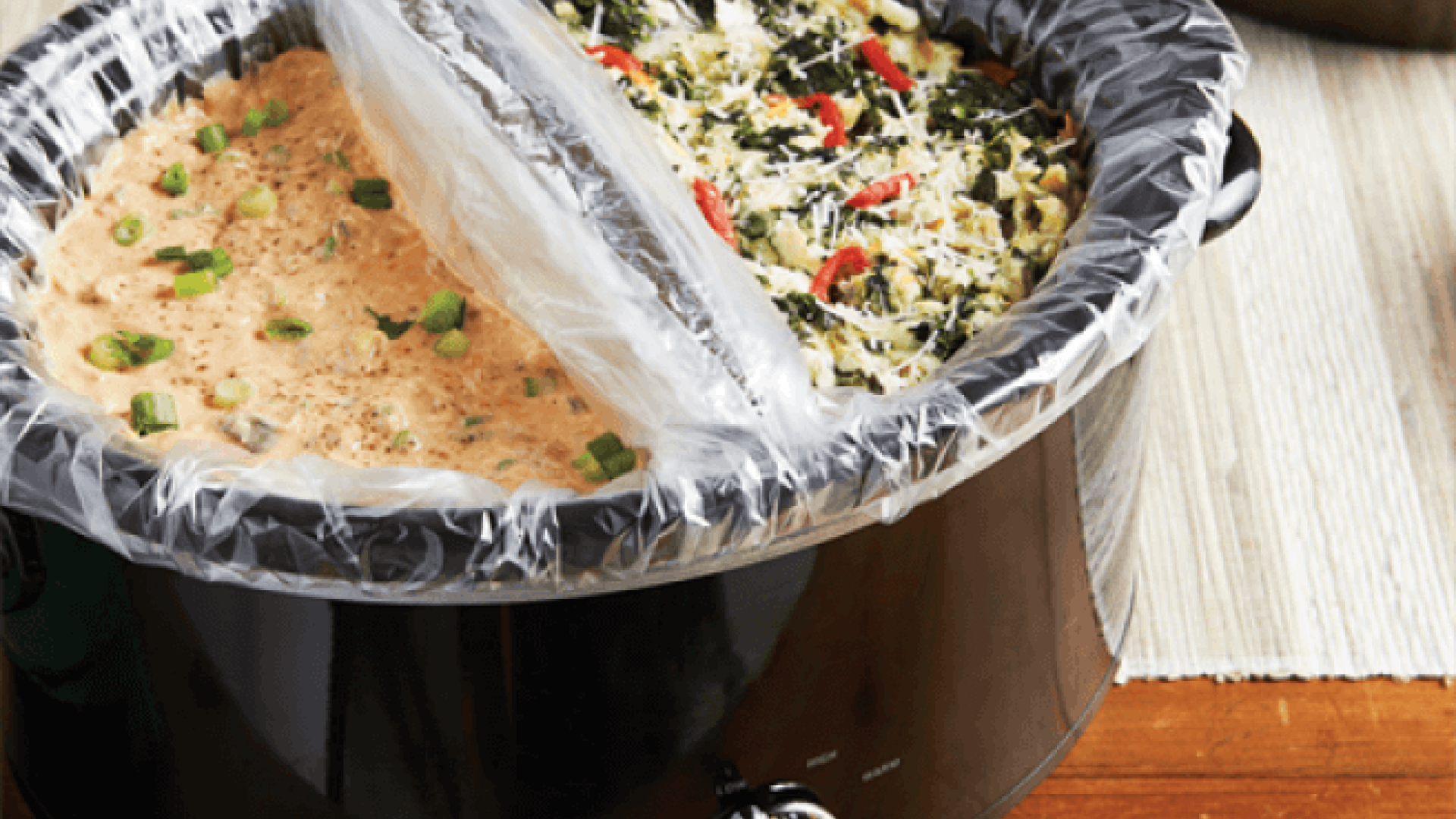 What’s better than a warm, spreadable dip for a game-day party? Two satisfyingly delicious party dips in one slow cooker. This simple slow cooker divider hack lets you keep two dips hot and ready for your party or tailgate. Imagine your guests diving into a savory Double-Layered Cheesy Jalapeño Dip or a melt-in-your-mouth Slow Cooker Hot Cheesy Chicken Dip. Talk about double deliciousness! And thanks to slow cooker liners, you’ll score an easy cleanup.