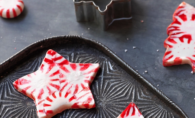 Fill each cookie cutter with peppermint candies. Break candies into pieces to fill in smaller areas.